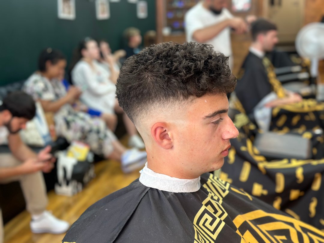 Welcome to our barber shop, where customer satisfaction is our top priority! Our talented barbers are dedicated to providing you with the best grooming experience possible. From trendy haircuts to classic styles, we've got you covered. Our friendly and skilled team will listen to your preferences and give you a personalized haircut that suits your unique style. We pay attention to every detail to ensure that you leave our shop feeling confident and satisfied. We also do haircuts for kids and make sure they are feeling comfortable in our shop Come on in and let us take care of all your grooming needs!"
